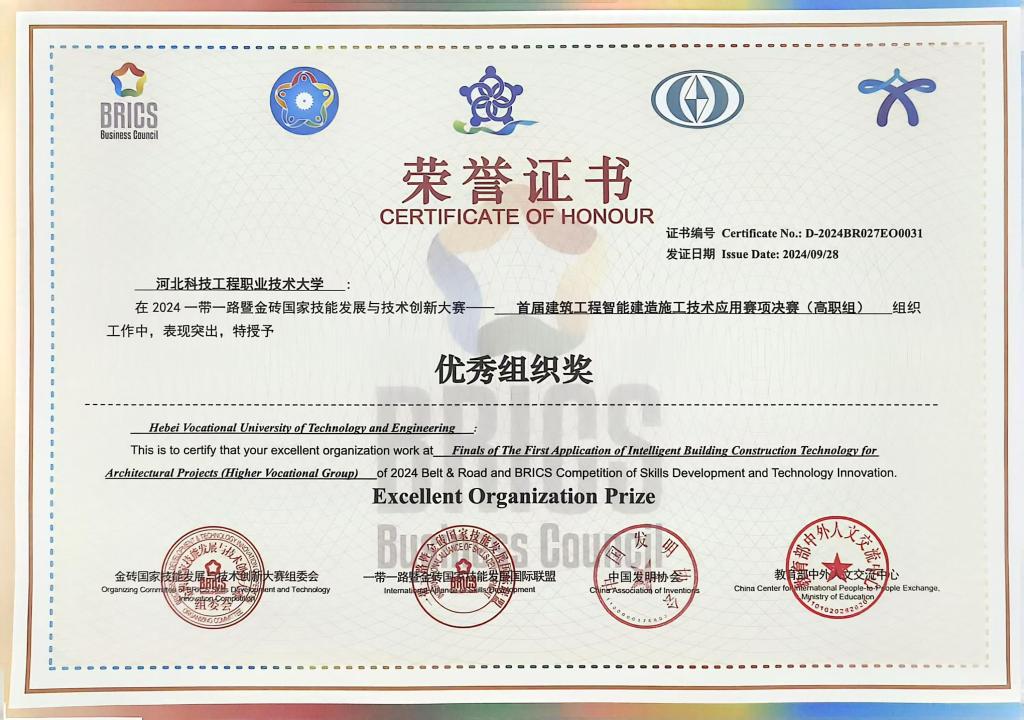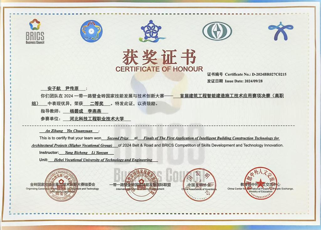 365官网在2024“一带一路”暨金砖国家技能发展与技术创新大赛中荣获二等奖