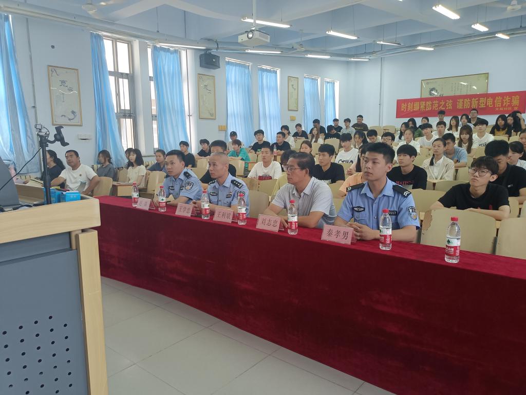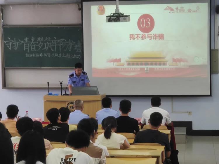 为进一步做好校园反诈骗宣传教育工作,全面增强师生的安全防范意识,最大限度预防和减少校园电信诈骗犯罪案件发生,建筑工程系联合文苑社区园丁工作站邀请信都区反诈中心、泉西街道办事处、钢铁北路派出所举办“守护青春梦,筑牢防火墙”预防电信诈骗警示教育主题活动。6月14日上午10时,我系党总支书记刘志忠、泉西街道党工委书记王利斌同志、钢铁北路派出所所长王学忠同志、反诈中心民警秦孝男、段建霖同志以及建工系学生代表共100余人参加活动。
