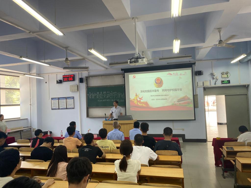 会上,刘志忠书记首先致欢迎词并结合我系学生真实案例简要说明开展此次活动的必要性和重要性。然后,反诈民警通过以案说骗、借骗说法等方式,重点围绕防范电信诈骗、网络赌博、网络借贷、刷单诈骗等与在校师生生活密切相关的内容,提醒师生学会识别常见电信网络诈骗套路,不要轻易通过网银、手机银行、电话等方式向陌生账户汇款或泄露本人身份信息。钢铁北路派出所所长王学忠告诫学生要诚信做人,切勿“因小失大”,杜绝售卡、借卡等违法行为,保护好个人征信记录等金融知识,不当诈骗犯罪团伙的“工具人”。最后,泉西街道党工委书记王利斌同志对本次活动做总结发言。