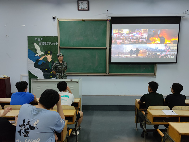 活动中,先后有三名退伍军人登台宣讲,他们分别是高伟鹏、黄磊、敬祺烨。三名退伍兵分享了在军营的训练视频、军旅生活照片、小故事等,讲述了在部队野外训练、站岗执勤和执行抢险救灾等重大任务的情况,真实地再现了军旅生活的酸甜苦辣。其中,敬祺烨向同学们简要介绍了中国人民解放军驻香港部队的基本信息,并展示了驻港部队的日常训练生活。黄磊在演讲中特别强调当兵不是儿戏,不能浑浑噩噩,要抱有良好的心态,要有坚持下去的决心。