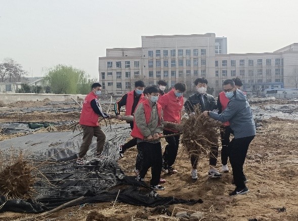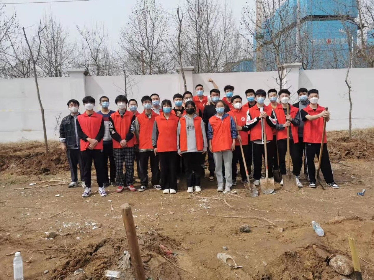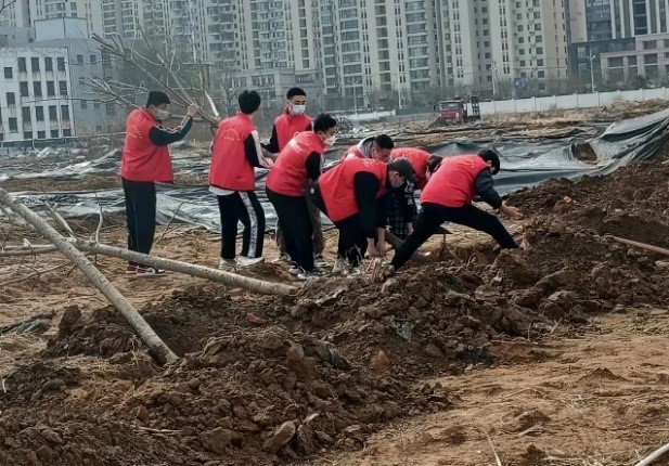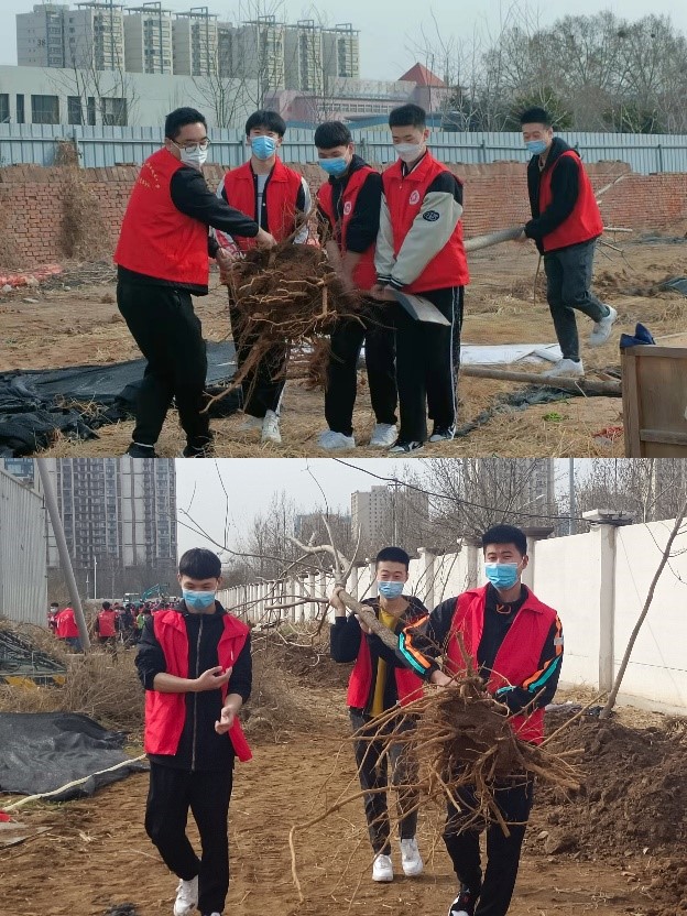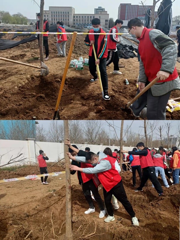 春风催新绿,植树正当时。为了增强广大师生珍惜绿色的责任心,促使高校学子积极践行环保理念,326日上午,建筑工程系组织教师和学生骨干共二十余人,前往东校区西南侧的建设场地参加义务植树活动。到达场地后,身穿红马甲的师生便热火朝天地忙碌起来,大家分工合作,干劲十足:抡锄挖坑,扶正树苗,挥楸培土……将一颗颗充满生机和希望的树苗植入坑内。看着那一片亲手种下的树苗在微风中摇曳,师生无不露出幸福的笑容。种树休息期间大家合唱歌曲《童年》,为植树活动增添了很多乐趣。最后同学们与小树苗进行了合影,本次活动圆满结束。