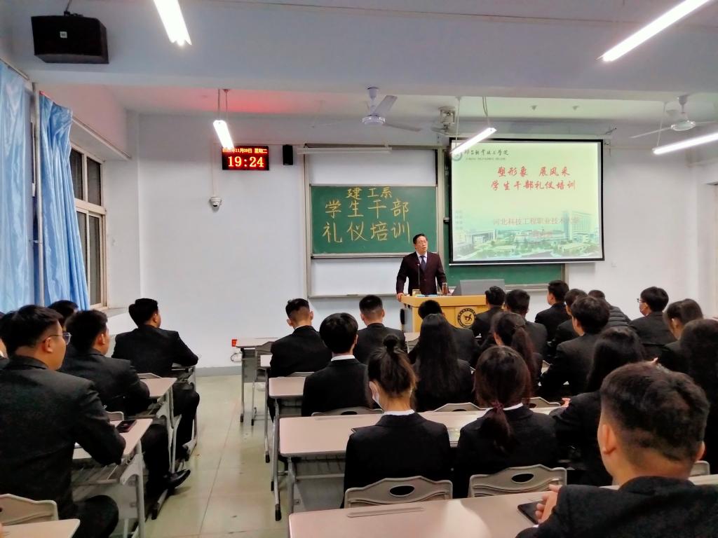 刘志忠书记就学生骨干礼仪开展首场培训。刘书记阐述了社交礼仪的重要性,并指出目前学生存在的礼仪问题,亲身示范了正确的礼仪规范。礼仪是一个人思想道德水平、个人修养的外在表现,每位同学都应积极学习礼仪知识,展现出我系学生骨干的良好风貌。