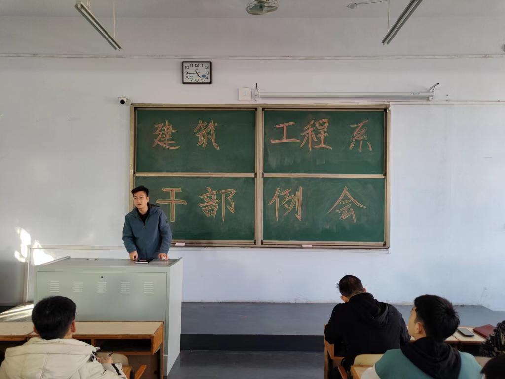 11月13日下午2:00,建筑工程系在二教1-2召开学生干部例会,刘志忠书记、卜慧楠老师、王杨老师、吴光老师出席例会,21级和22级学生干部参加例会。