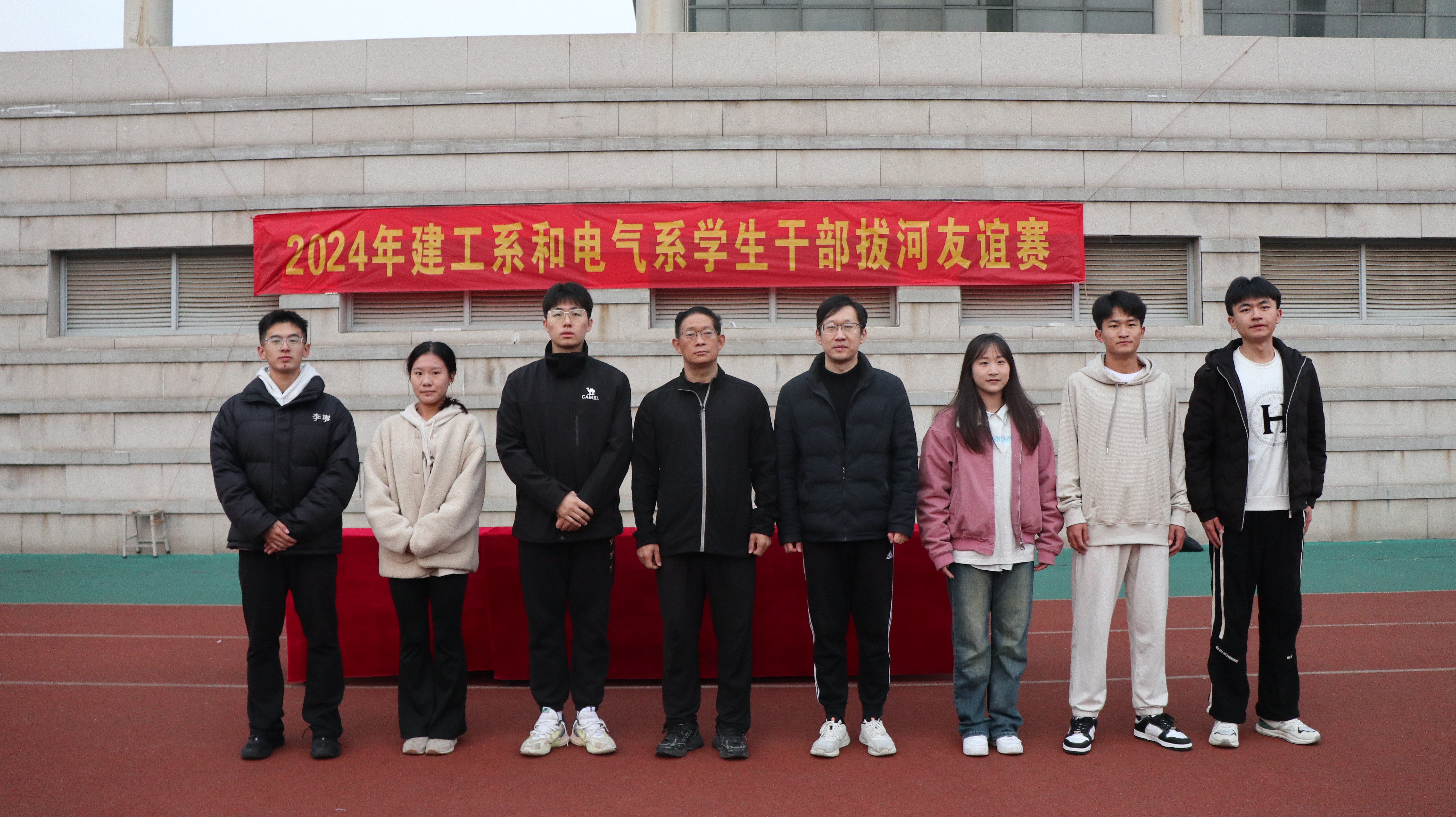 为加强系部学生骨干之间的交流,增强集体凝聚力和集体荣誉感,丰富校园文化,建筑工程系和电气工程系于11月8日早晨在东校区操场举行拔河友谊赛。建工系党总支刘志忠书记和电气系党总支黄涛副书记亲临活动现场为同学们加油鼓劲。