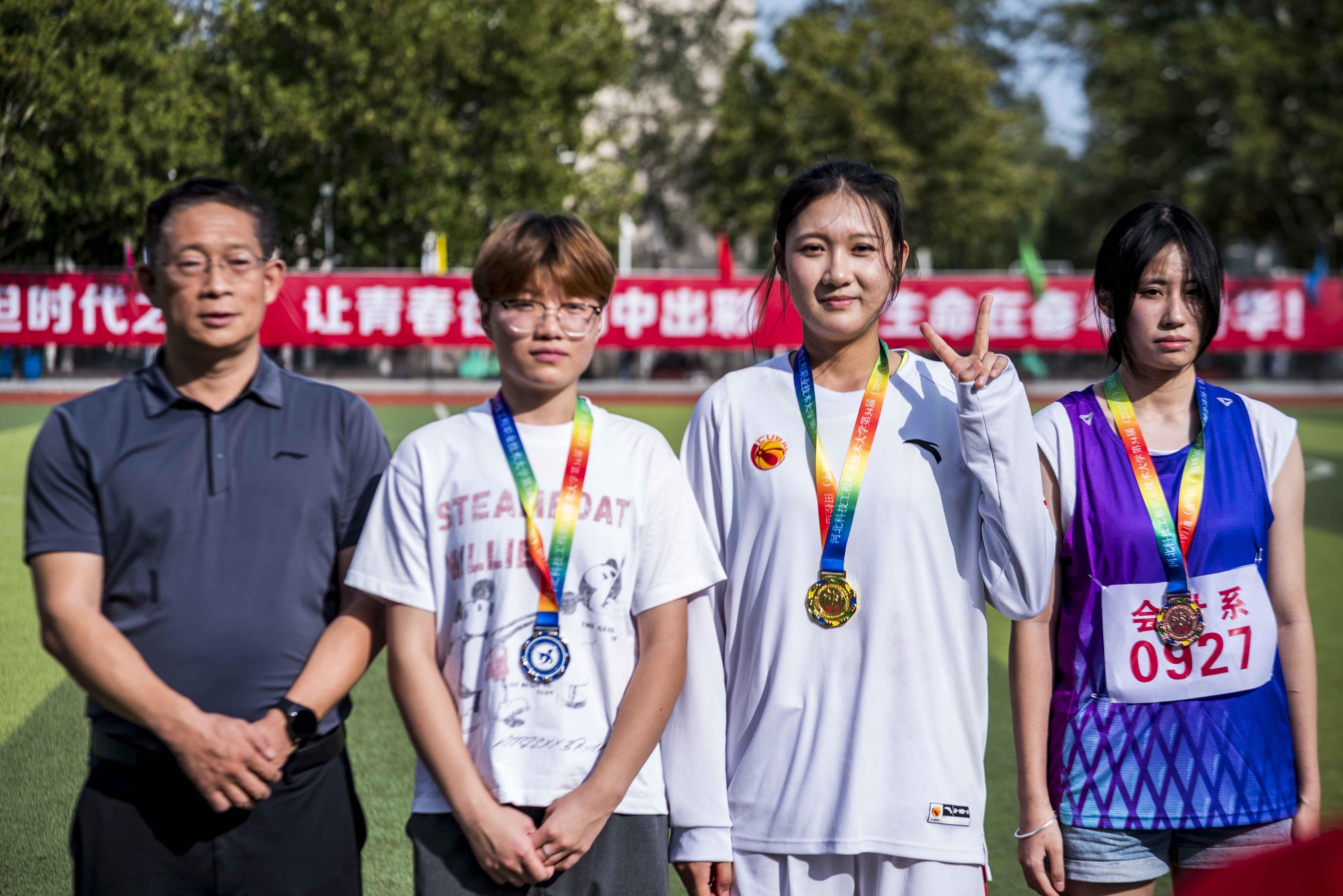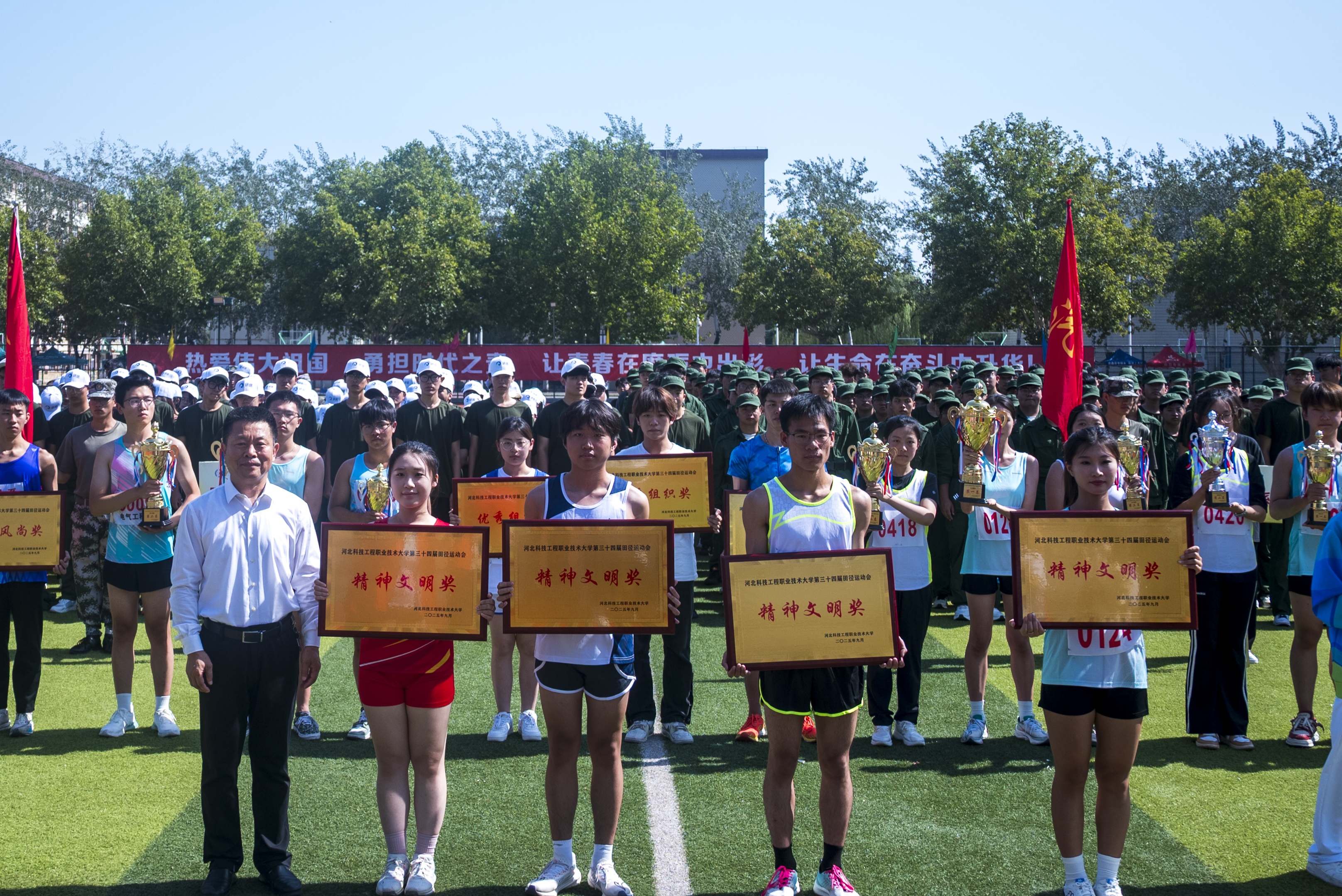 本届运动会中,我系周密部署、精心组织,运动员们顽强拼搏、奋勇争先,展现了超越自我、永不言败的精神风貌和青春活力。赛场上,运动健儿们挥洒汗水、分秒必争,用每一次冲刺与跳跃诠释运动的魅力;看台上,加油声此起彼伏,锣鼓声响彻操场;志愿者们积极履职,以贴心周到的服务为运动会保驾护航。