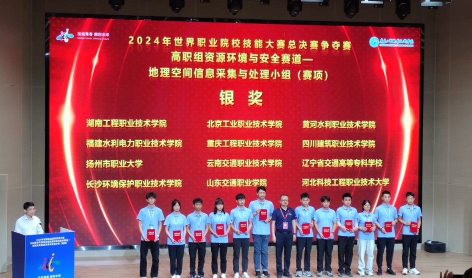 10月25日-28日,2024年世界职业院校技能大赛总决赛争夺赛高职组资源环境与安全赛道地理空间信息采集与处理小组(赛项)在广东工贸职业技术学院成功举办。来自30个省、自治区的62支参赛队伍激烈角逐,365官网建筑工程系学生欧韶康、吴良宇、曹森、张航(指导教师:赵栋、赵玲)组队参赛,最终获得银奖。
