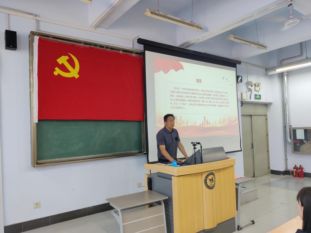 根据建筑工程系党总支主题教育工作安排,6月7日晚,建筑工程系党总支刘志忠书记在主教学楼1-1阶梯教室,为学生党支部讲授学习贯彻习近平新时代中国特色社会主义思想主题教育专题党课,引导学生党员和入党积极分子坚持不懈用习近平新时代中国特色社会主义思想凝心铸魂,更好以党的创新理论武装头脑、指导实践、助推成长,以这次主题教育为契机,学思想、强党性、重实践、建新功,坚定不移听党话、跟党走,怀抱梦想又脚踏实地,敢想敢为又善作善成,立志做有理想、敢担当、能吃苦、肯奋斗的新时代好青年,让青春在全面建设社会主义现代化国家的火热实践中绽放绚丽之花。