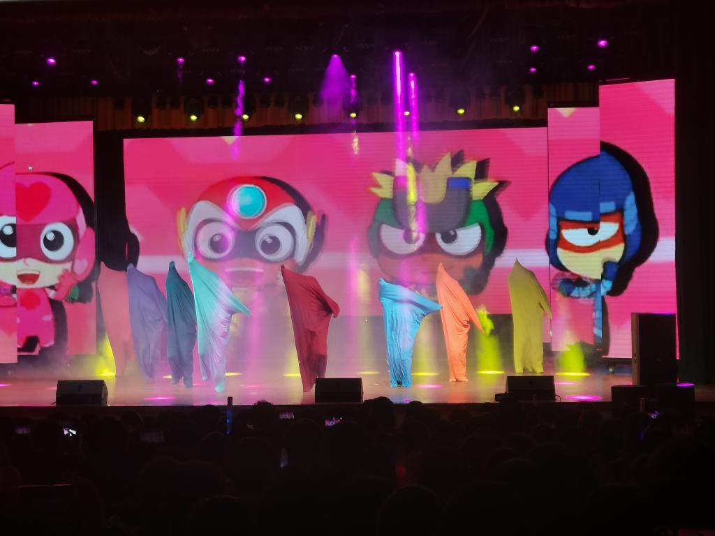 晚会以活力四射的开场舞《恋爱告急》拉开序幕。随后,歌舞、相声、小品、朗诵等节目依次上演,晚会现场热闹非凡,精彩纷呈。相声《关于爱情》用幽默的口吻讲述了对爱情的思考;吴光老师和学生带来歌伴舞《爱情鸟》,吴老师嘹亮的歌声和同学们潇洒的舞姿,瞬间点燃晚会气氛。舞蹈《AFTER LIKE》和歌曲串烧《安和桥》、《梦中的额吉》、《红莓花儿开》展现了同学们的多才多艺,优美的歌声和萨克斯演奏使舞台效果升温。创意舞蹈《童年畅想曲》令人耳目一新,勾起诸多美好回忆;歌曲《爸》感人肺腑,催人泪下;小品《少爷与小姐》诙谐幽默,令人捧腹;歌伴舞《青花瓷》古朴典雅,清新流畅;说唱与武术相结合的《万里长城》,演员动作刚劲有力、气势非凡。伴随着《桃花朵朵开》的欢快歌声,福气满满的糖果和玩偶发送到观众手中,晚会气氛也到达高潮。最后,在铿锵有力的诗朗诵《青春中国》中,元旦晚会顺利落下帷幕。