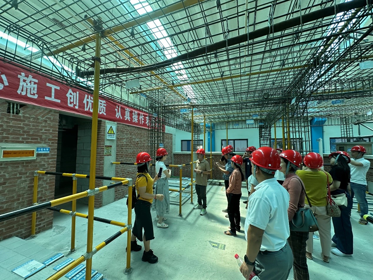 随后,实训中心老师对各实训场所做了细心讲解,在情景体验式行走课堂,教师们感受了不出工地就能体验施工一线的场景,实训过程中也避免了安全事故。随行的两位建筑专业教师对其他教师进行了一一翻译,对我系的技术支持表示了极大的认可。