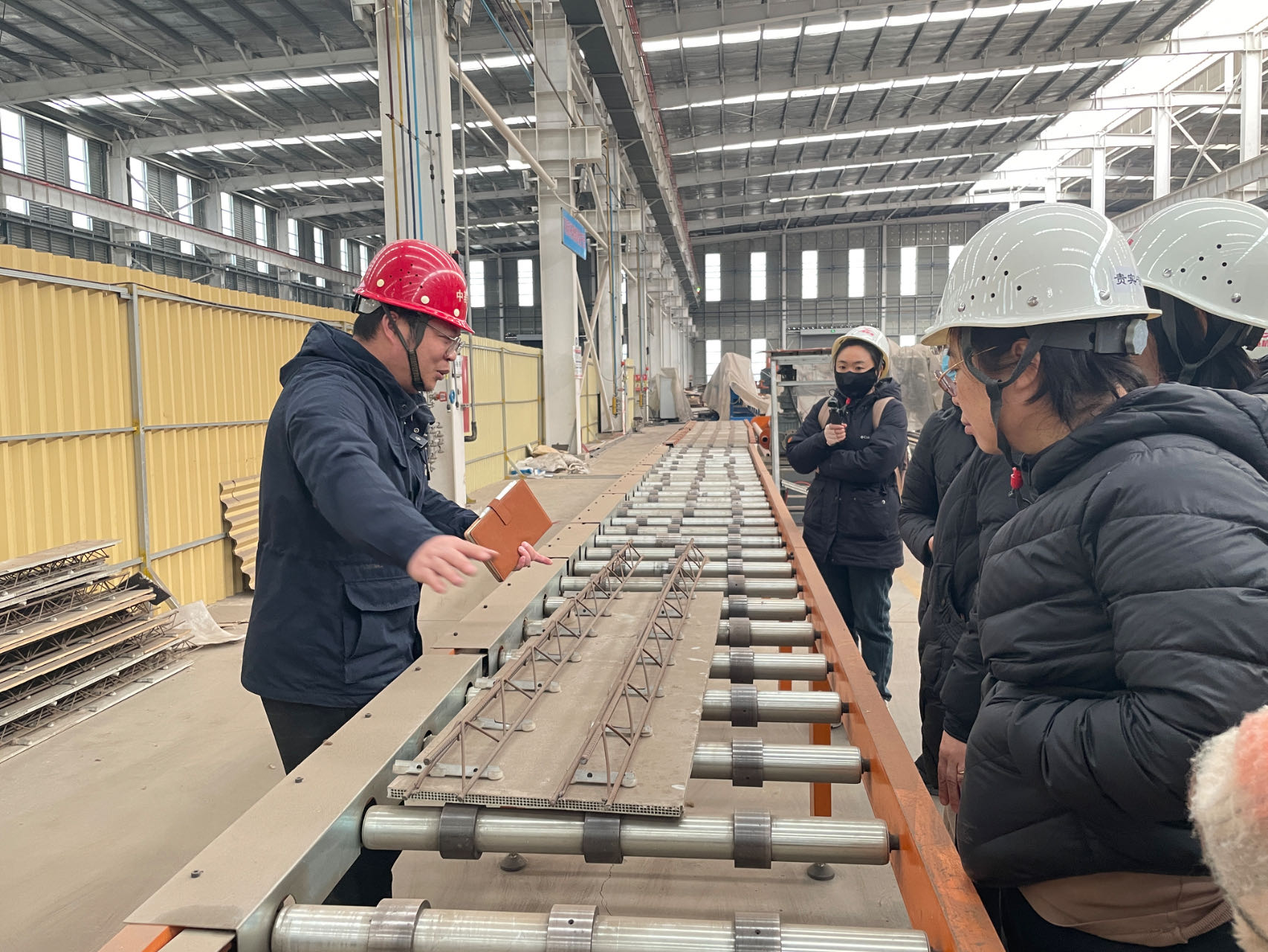 在公司的精心安排下,学员们首先参观了中顺基润的生产车间和研发中心。公司技术人员详细介绍了钢管束生产线、H型钢梁生产线以及钢筋桁架楼承板的生产流程和技术特点。学员们亲眼目睹了从原材料到成品的全过程,深刻感受到现代化智能制造的高效与精准。