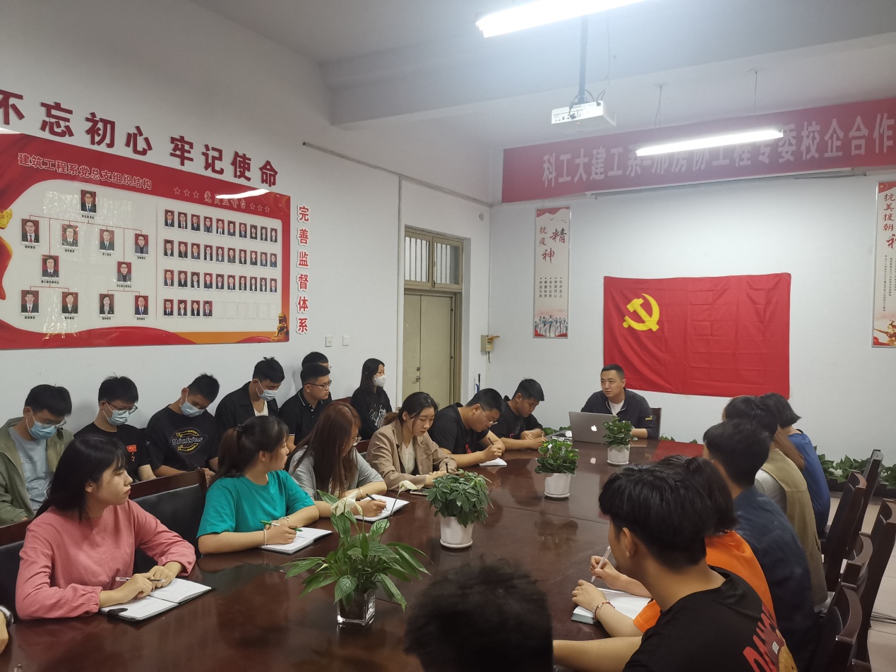 2021年5月6日上午,建筑工程系李宁副书记在党员活动室为团学骨干开展党史学习教育宣讲。李书记结合大量生动的人物故事和党史案例,对党的发展历程和党史学习教育的意义作了重点讲解。李书记指出,在座学生骨干要把学业和党史学习教育结合起来,坚定不移听党话、跟党走,争当有理想、有本领、有担当的新时代青年,不负青春韶华、不负伟大时代。