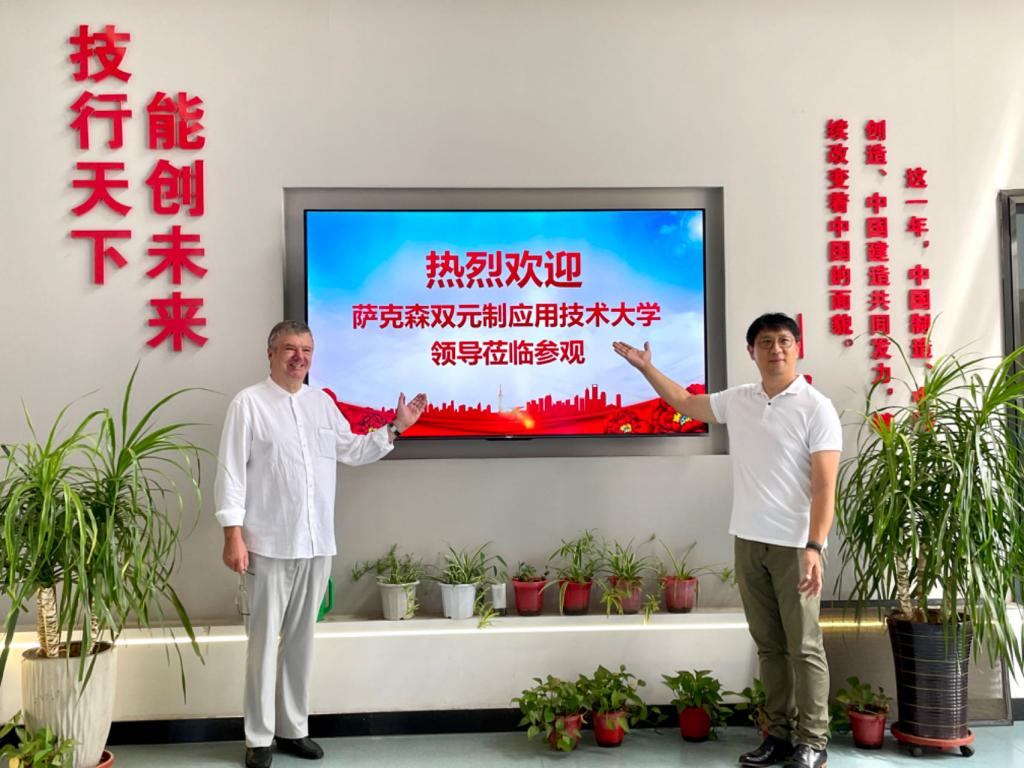 7月26日,德国萨克森双元制应用技术大学校长汉塞尔教授、副校长施韦泽教授一行到我系交流参观。在副校长李贤彬、建筑工程系主任张广峻、副主任崔立杰与实训中心教师们的陪同下,与德方一行参观了建筑工程技术中心。