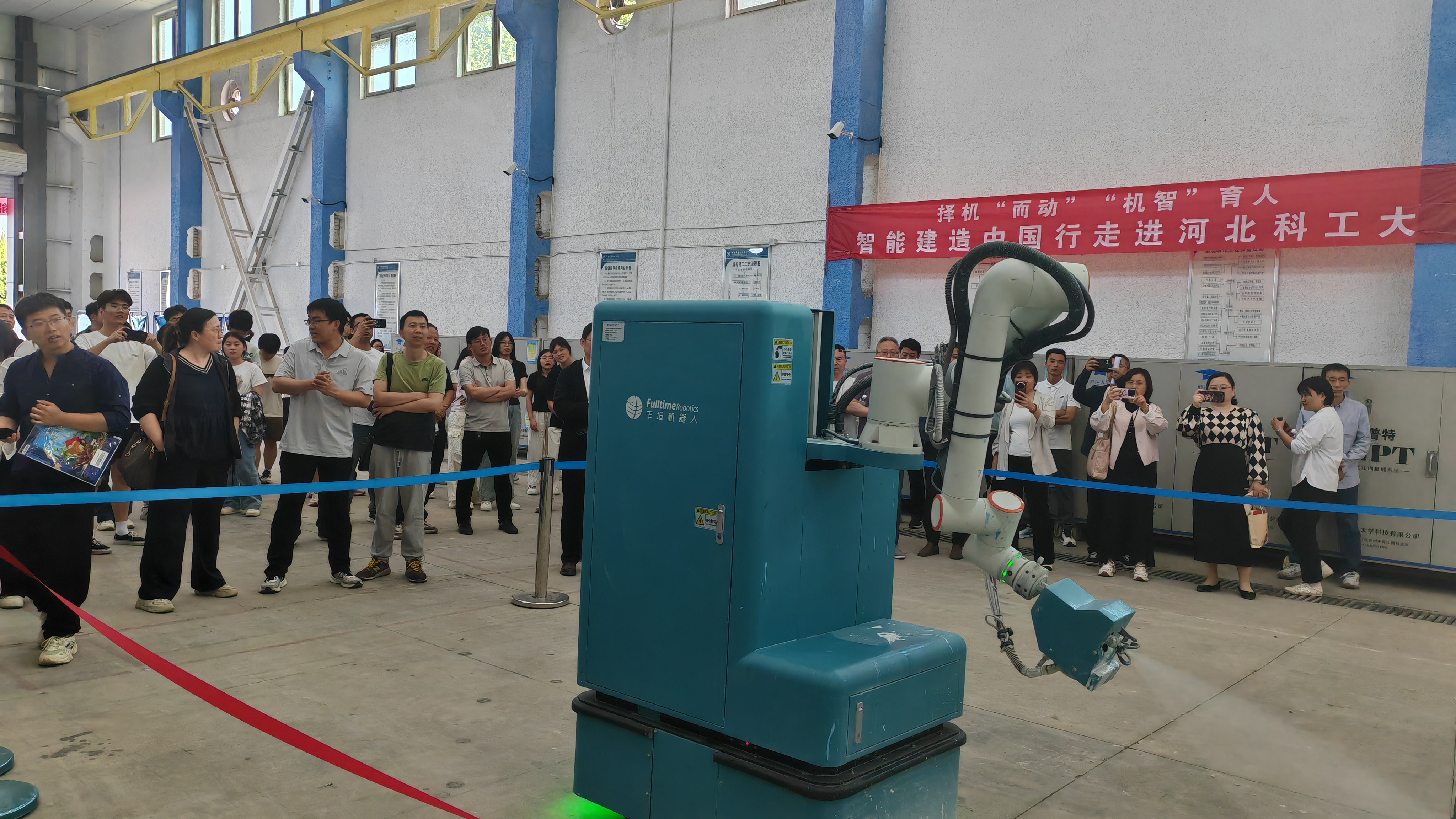活动现场还设置了技术展示与互动研讨环节。在365官网智能建造技术中心,与会人员实地观摩了喷涂机器人等智能装备的协同作业演示。校企双方代表围绕“建筑机器人操作规范”“智能建造课程开发”等议题展开深度研讨。