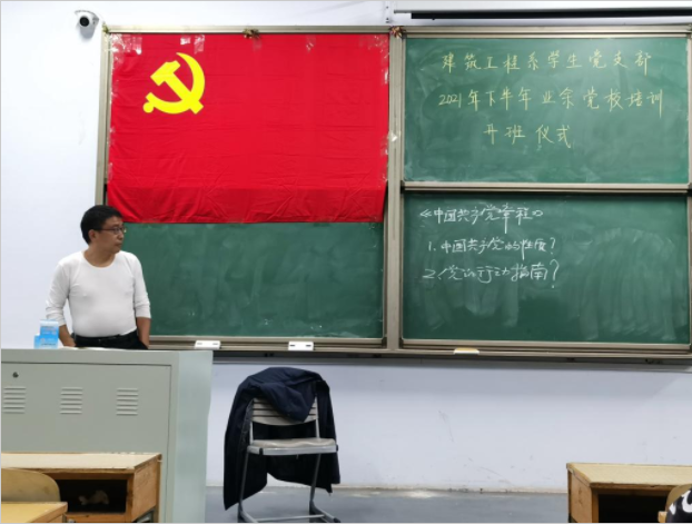 10月4日,建筑工程系业余党校2021年下半年入党积极分子培训开办仪式和开班第一课在二教1-2隆重举行。在开班仪式上,李宁副书记围绕“思想上高度重视”“学习上态度认真”“行动上勇于担当,向党靠拢、与党同行”等三方面对同学们提出了要求。李宁副书记指出,建筑工程系党总支刘志忠书记高度重视入党积极分子培训和党员教育管理工作,把入党动机端正,理想信念坚定,党的基本理论扎实, “听党话,跟党走”, 专业功底深厚,甘愿奉献国家、服务人民,堪当民族复兴大任的时代新人培养给党、国家和人民是建筑工程系党总支的始终追求。“建筑工程系业余党校培训标准,只能比学校党委要求更高,不允许打折扣、降低。”