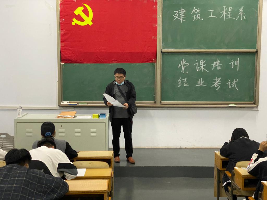 10月15日晚,建筑工程系业余党校2021年下半年入党积极分子培训班结业考试试题在二教1-2教师举行。考试采用闭卷方式进行,满分100分,时间120分钟。通过严肃考产纪律、阅卷,参加考试的71名同学,70名同学考试合格。建筑工程系业余党校入党积极分子培训圆满结束。