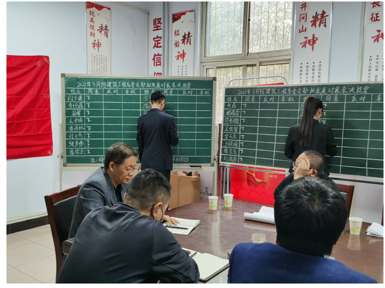 2021年是建党100周年,党员发展数量增加,为确保党员发展质量,建筑工程系党总支以《党章》《中国共产党发展党员工作细则》等党内法规和规范性文件为遵循,总支书记以普通党员身份参与并指导支部党员发展工作,督导支部党员发展坚持“控制总量、优化结构、提高质量、发挥作用”的总要求,始终把政治标准放在首位,始终坚持党员发展标准不降低,始终坚持“成熟一个,发展一个”,始终坚持入党积极分子的推荐确定、上报备案、培养教育,发展对象的讨论确定、政治审查、票决公示、集中培训,预备党员的考察、接收、表决、审批和转正等每一个环节,严格程序、遵循规范。