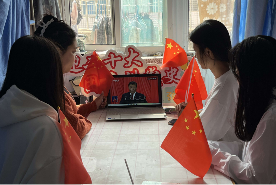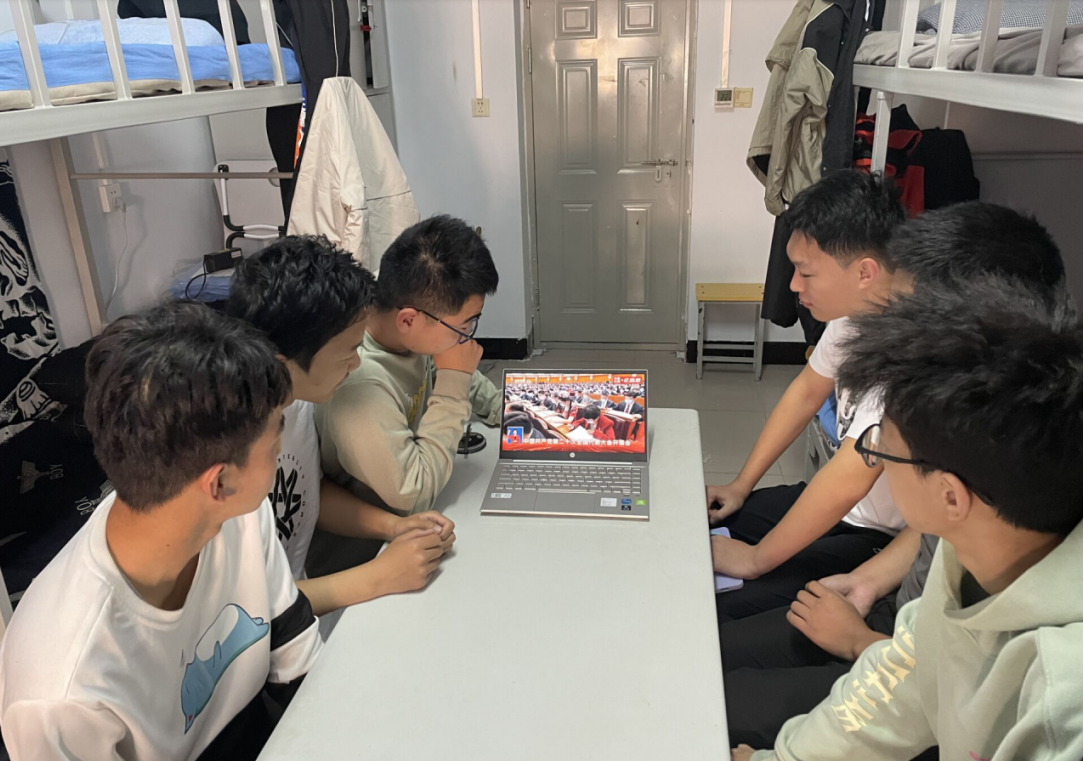 师生满怀热切期待的党的二十大开幕,正赶上学校第二批学生秋季返校,这对建筑工程系师生来说是“双喜临门”!建筑工程系党总支刘志忠书记在党的二十大开幕前夕对全系师生收听收看党的二十大开幕会做了周密部署:党总支书记组织班子成员并统揽协调全系师生、教工党支部书记苑敏组织教工党支部、学生党支部书记于小五组织学生党支部收听收看开幕会盛况--10月16日一早利用“学习强国”学习平台组织师生阅读人民日报社论《奋力开创中国特色社会主义新局面—热烈祝贺中国共产党第二十次全国代表大会开幕》为收听收看开幕会盛况“预热”--16日上午10时,全系师生--教工在家,学生在宿舍,利用电视、电脑、手机分组收看、分别收看。远在菲律宾学习的李宁副书记、石旭老师也通过互联网收看了开幕会盛况。吴光、于小五两位老师在迎接学生返校一线用“学习强国”--“听广播”平台收听了开幕会。