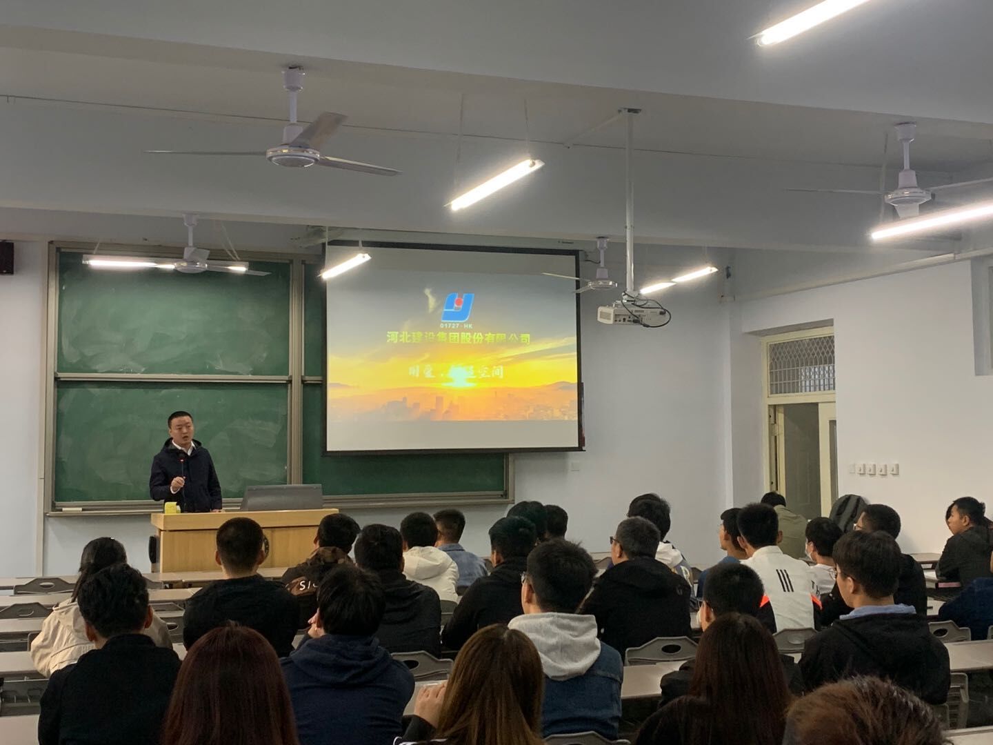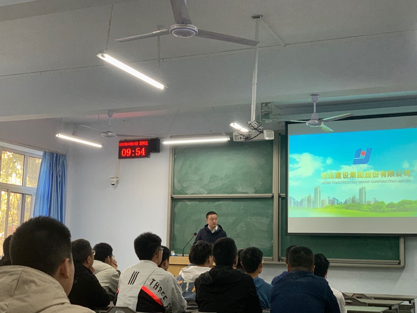 在就业形势依然严峻的背景下,为促进我院学生实习就业,进一步搭建校企人才沟通合作平台,拓宽学生实习就业渠道,给我院学生就业提供全面有效的服务,我系于10月23日在二教103教室举办河北建设集团有限公司校园招聘会。