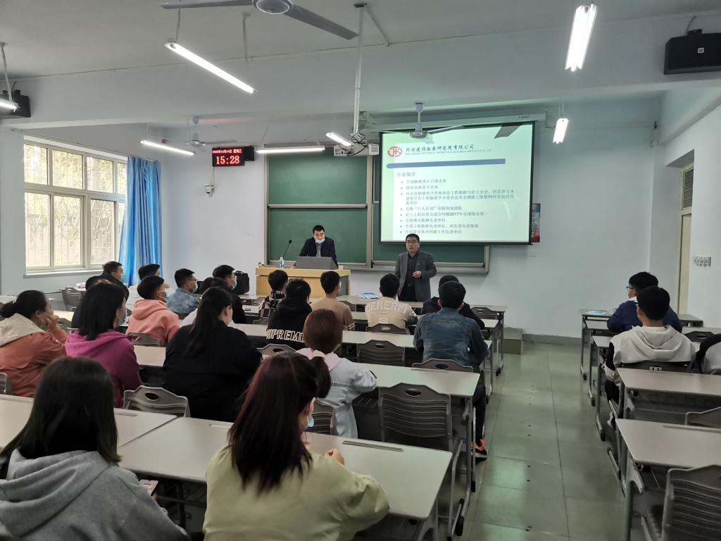 10月14日,河北建设勘察研究院有限公司在二教进行专场招聘会,50余名学生积极参加此次招聘会,我系于小五老师进行动员讲话。