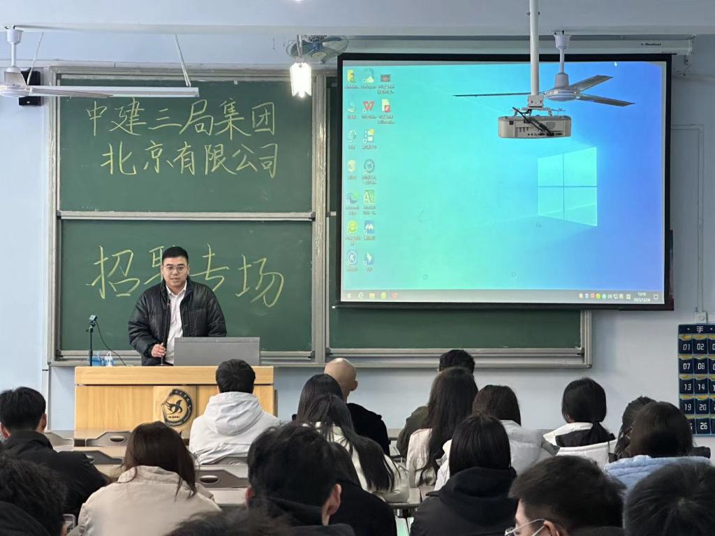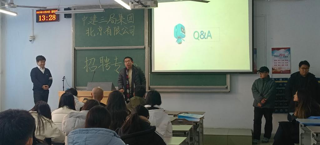 为助力就业高质量发展,推动人才强国战略,建筑工程系于12月28日下午一点,在二教107教室举办中建三局集团北京有限公司专场招聘会,由就业辅导员于小五老师组织此次招聘会,2023届毕业生积极参加。