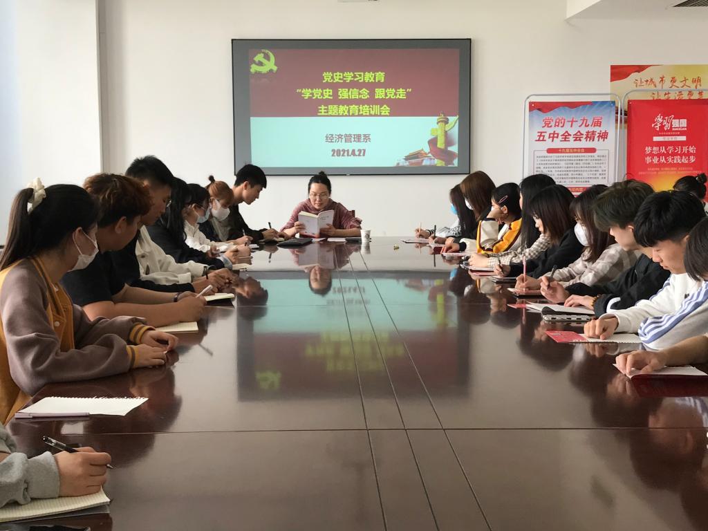 为贯彻落实从严治会要求,积极响应党的号召,学党史,悟思想,办实事。我系于4月27日中午十一点半在6号楼604教室开展“学党史,悟思想,办实事”主题教育活动。会议由张诺老师主讲,经管系学生会团支部全体成员参与活动。