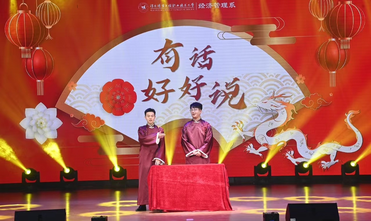 晚会在动感十足的开场舞《大梦想家》中拉开序幕,现场气氛热烈,座无虚席。一段诙谐幽默的相声《有话好好说》引发了观众们的阵阵笑声;拉丁舞《青春的律动》,将舞者优雅的舞姿和动感音乐完美融合,点燃了全场观众的热情;教工节目《明天会更好》、《青玉案·元夕》,展现了青年教师自信、乐观、向上、靓丽的风采;合唱歌曲《党旗飘扬的方向》和教官节目《奋斗有我,当“燃”青春》,激发了观众们的青春热血,彰显了经管学子的爱国情怀;反诈小品《天网恢恢》,让大家深刻意识到诈骗的危害,认识到网络安全的重要性;朗诵《我们的热爱》和歌曲《流行之声》,深情表达了同学们对美好生活的热爱,对未来的无限憧憬;最后,晚会在舞蹈《灯火里的中国》的悠扬旋律中落下帷幕。