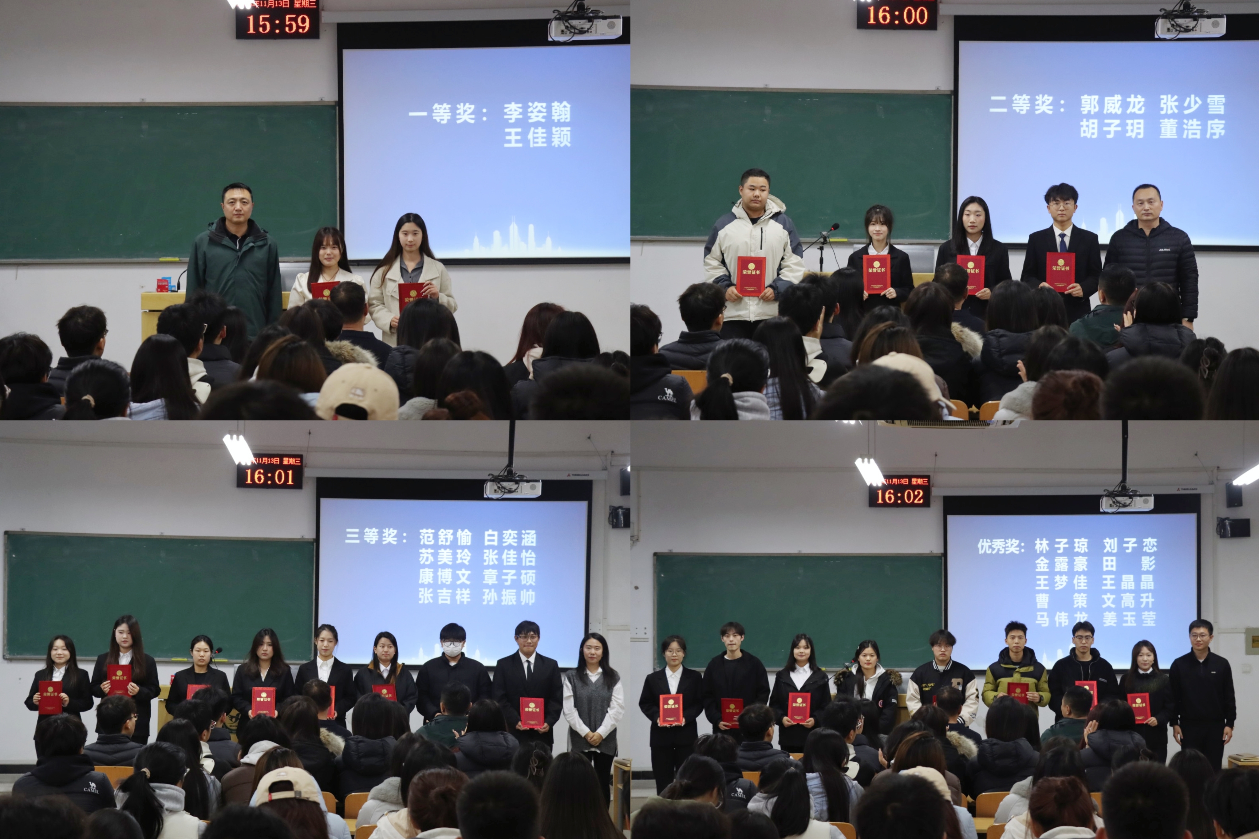 本次大赛从10 月 28 日开始,分为网上报名、材料审核、赛前培训和正式比赛四个阶段,全系报名700余人。经过前期赛事培训及专业指导等准备工作,大赛分为成长组和就业组两个赛道,三个赛场同时进行。在比赛现场,选手们以青春的热情、充满活力的演讲和精心制作的 PPT ,向评委老师们进行展示,他们深入剖析自我,清晰阐述自己的职业目标和规划路径。随后,在答辩环节,选手们根据评委的提问,进一步阐述和解析自己的理想和职业规划前景,评委老师们的现场点评,也使选手们获益匪浅。最终,经过专家评委的打分,李姿翰、王佳颖获得一等奖;郭威龙、张少雪、胡子玥、董浩序获得二等奖;张吉祥、范舒愉、白奕涵、苏美玲、张佳怡、康博文、章子硕、孙振帅获得三等奖;林子琼、姜玉莹等十名同学获得优秀奖。
