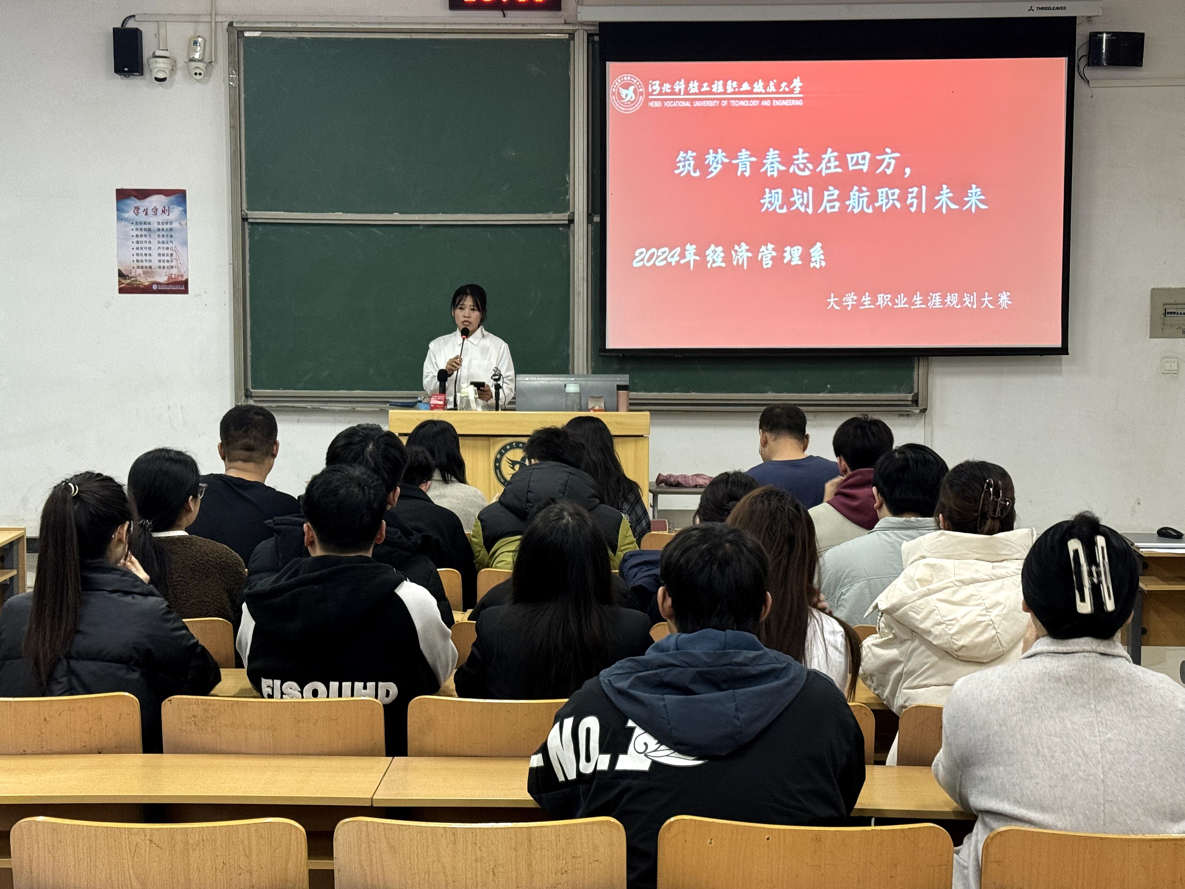 筑梦青春至四方,规划启航引未来 。为提高大学生职业规划意识,增强个人职业素质,提高职业竞争力,根据学校招生就业处《关于开展第二届大学生职业规划大赛的通知》要求,11 月 11 日晚,经济管理系于C区举办第二届大学生职业规划大赛,全系60余名学生参赛。