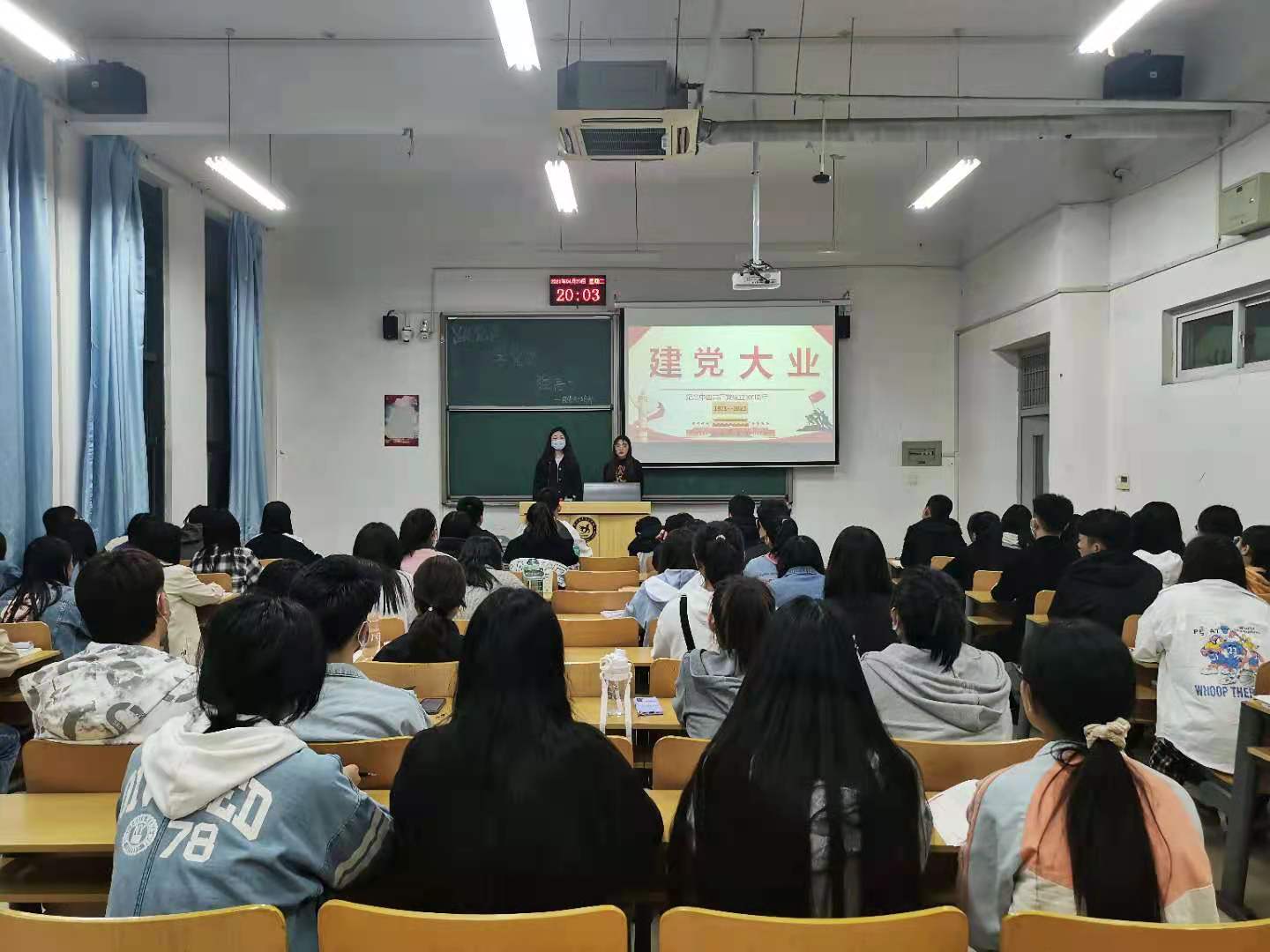 首先,由体育部金娜,何潇一担任主讲,带领同学们回顾党的百年征程。主要讲述了党成立的原因,建党以来获得的伟大成就,从工人运动到改革开放,社会整体生产力水平大幅度提升,经济总量已连续多年位居世界第二位。其次,着重强调新时代青年应该加强政治引领,始终坚持中国共产党的领导;坚持铸魂育人,贯彻落实立德树人根本任务;强化价值引导,培育践行社会主义核心价值观。最后,活动在同学们积极互动中圆满结束。