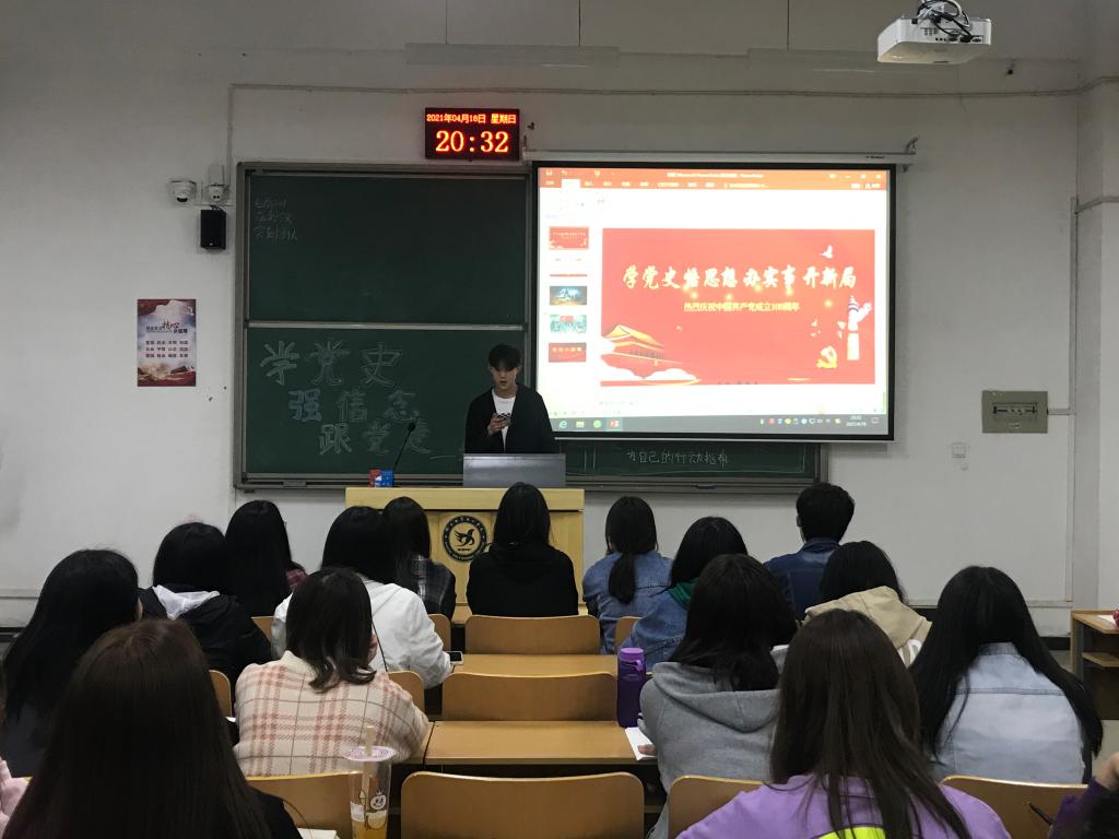 为了弘扬中国共产党精神,增强大学生对党的了解,坚定对中国共产党的信心。我系文艺部于4月17日晚八点在c区103电商班举办了“学党史,强信念,跟党走”系列宣讲活动。参加本次活动有经管系学生会团总支文艺部及电商班全体成员。