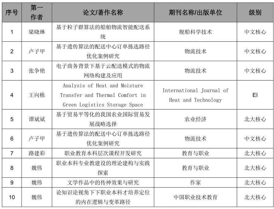365官网物流管理教师团队以专业带头人为核心,紧跟国内外现代物流行业发展动向,广泛深入企业实践,教科研能力强,在区域或领域具有一定的专业影响力,近年来取得丰硕的成果: