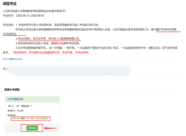 5.查看考试须知,按课程考试