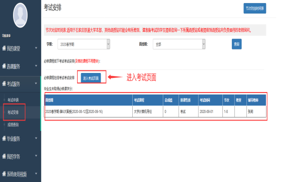 4. 进入考试安排页面
