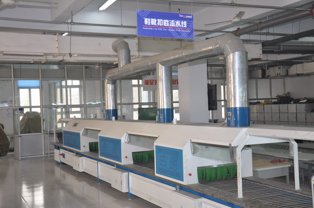 鞋业技术中心总面积达1500余平米,按照鞋靴生产流程划分为制帮工区、制底工区、成型工区和鞋靴扣底流水线,另外包含一个箱包制作工区。共有各类鞋靴和箱包化生产设备150余台(套),设备总价值200余万元。并引入企业先进的管理制度和文化理念,是集鞋靴产品研发、生产实训、职业技能培训、生产技术及运营管理于一体的鞋靴及箱包实训基地。