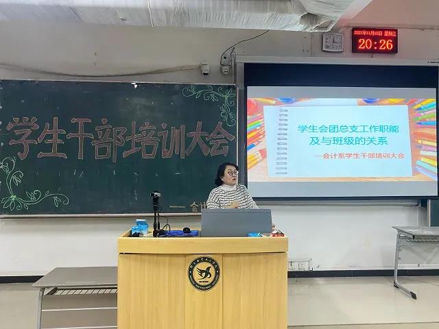 9日晚,张乔玲老师在培训中强调学生干部是学校的重要力量,是学校众多活动的组织者与领头人。随后,张乔玲老师从学生干部的管理技巧、沟通技巧、服务技巧和自我提升四个方面展开讲解,引导学生干部们如何把本职工作做到更好,学会自我管理与合理安排时间,学会把复杂的工作简单化。培训的最后,张乔玲老师指出,学生干部应当注重自己的一言一行,明确自身的定位,做好表率,营造良好的系部氛围。