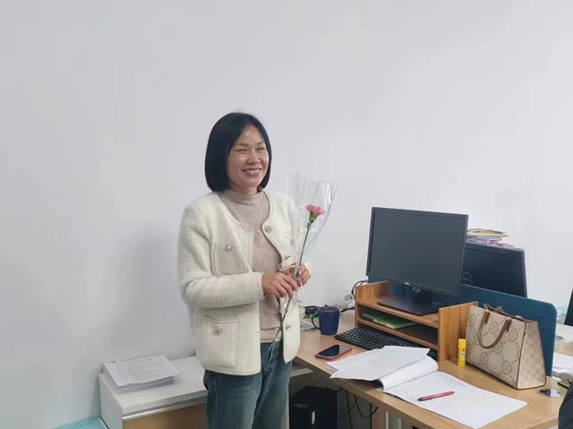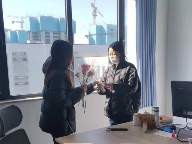 活动前夕,我系组织学生代表前往教师办公室为女性教育工作者送花,同学们以送花的方式对老师的辛苦付出表达了诚挚的感谢,同时这也是对会计系教育事业能够花团锦簇、蒸蒸日上的美好祝福。活动中,同学们写下祝福语贴,用一句句朴实简短的话语表达了对女性浓浓的赞美与关爱,发出了尊重女性的强力号召。接着,志愿者为参与活动的同学分发糖果,向他们表达了真诚的回应并希望她们能像展板上所写的那样,永远把爱自己作为人生的第一信条。最后,陈书记与在场的工作人员进行合照,为此次“女神节”主题活动画上了完美的句号。
