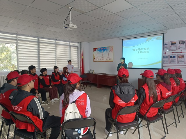 活动伊始,马院长在会议室内对志愿服务队进行“爱与陪伴”技术之用心倾听的技术培训。随后,志愿服务队以两人为一组,在医护人员的引导下进入病房与老人交谈。此后,志愿者们返回会议室中分享心得感受。紧接着,志愿者们在马院长的带领下完成切断仪式、共唱《爱的奉献》。活动最后,冯渊老师鼓励志愿者们积极参加志愿服务活动,为构建和谐社会贡献自己的力量。本次志愿服务活动的顺利开展,弘扬了爱老敬老精神,传递温暖和爱心、推动敬老事业的发展。希望未来有更多的人加入到爱老敬老的行列中为他们提供更多的爱和帮助。