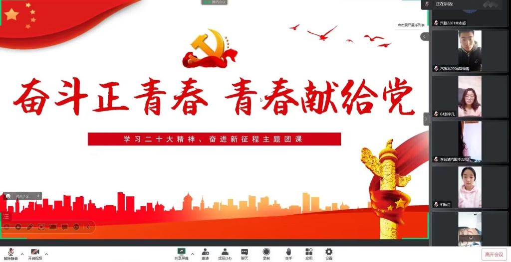 为深入贯彻落实党的二十大精神,引导青年团员统一思想。我系组织开展学习二十大精神主题团日活动。此次活动于线上进行,全系优秀共青团员参与活动。