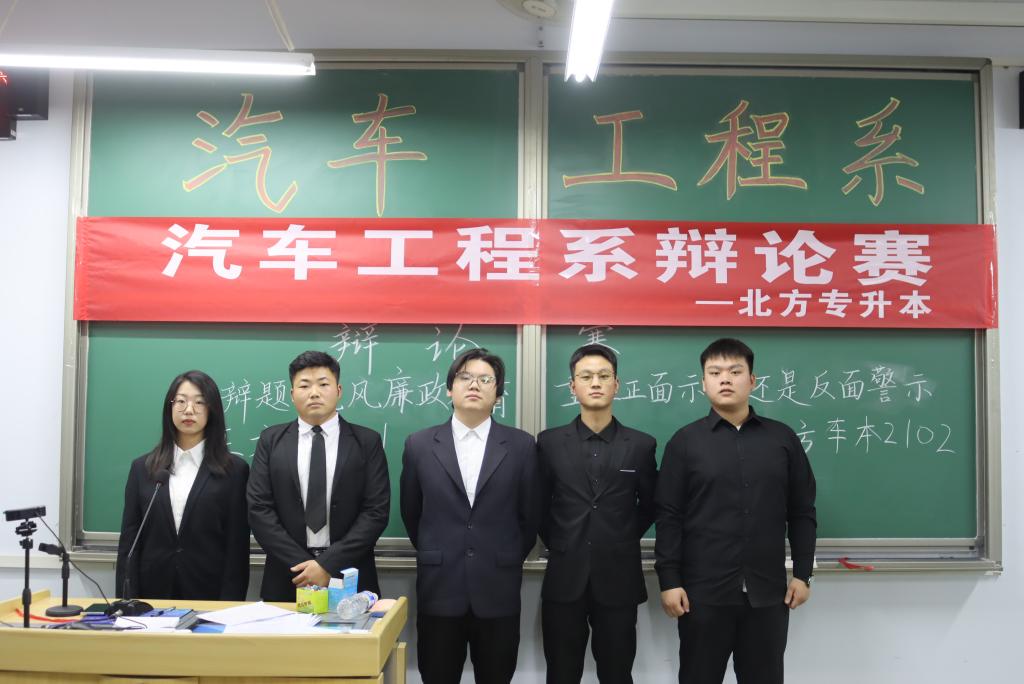 为培养团队精神,增强我系学生的思维意识与思辨意识,将廉政教育渗透到日常活动中。3月25日晚,我系21级辩论总决赛在第二教学楼303、309举行。22届部分学生会干部担任评委。能源本2101代表队、能源本2102代表队、汽制2101代表队、车本2102代表队参加。