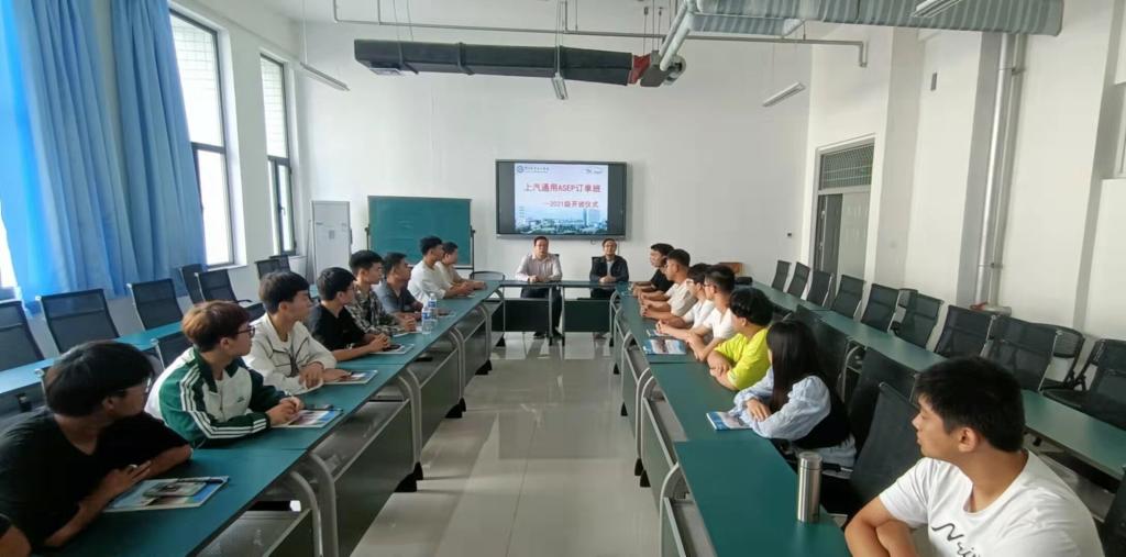 9月30日上午,2021年SAIC-GM ASEP订单班开班仪式在汽车系会议室举行。汽车工程系副主任王文龙、订单班教师刘昊、SAIC-GM ASEP订单班全体22位学员出席了开班仪式。
