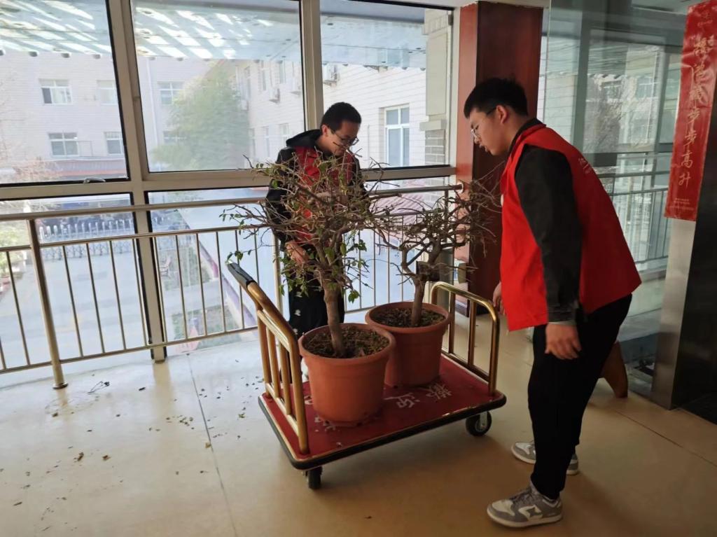 活动开始,志愿者在了解活动内容后组成搬花小组,他们在养老院工作人员引导下分别前往不同楼层。他们在搬小花盆时小心翼翼,没有破坏一花一叶;在搬体积较大的花盆时,他们积极发挥团队合作精神共同完成搬花任务。当花摆到指定位置后,志愿者细心善后,将地面的落叶打扫干净并将用具返回的指定位置。养老院的爷爷奶奶们向志愿者投来了赞许的目光,在养老院工作人员表达感谢后,本次活动以合影留念而圆满结束。