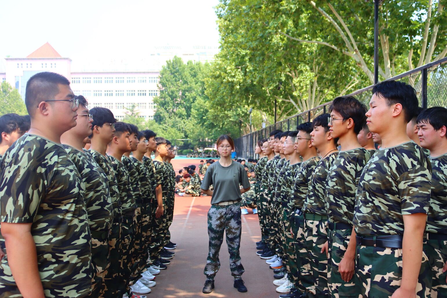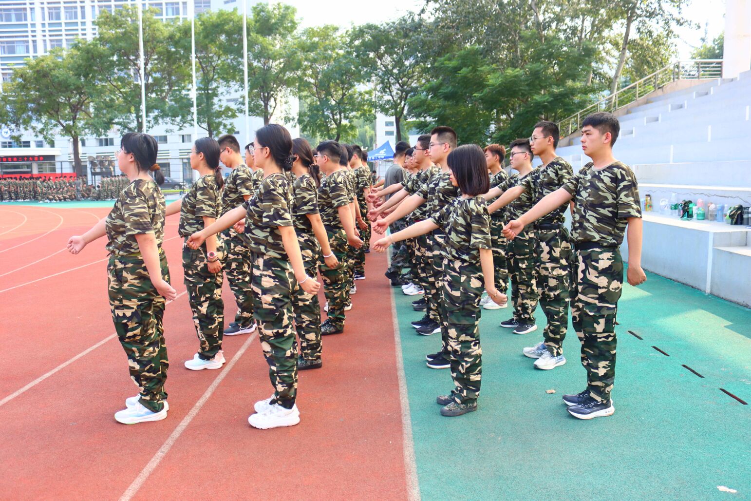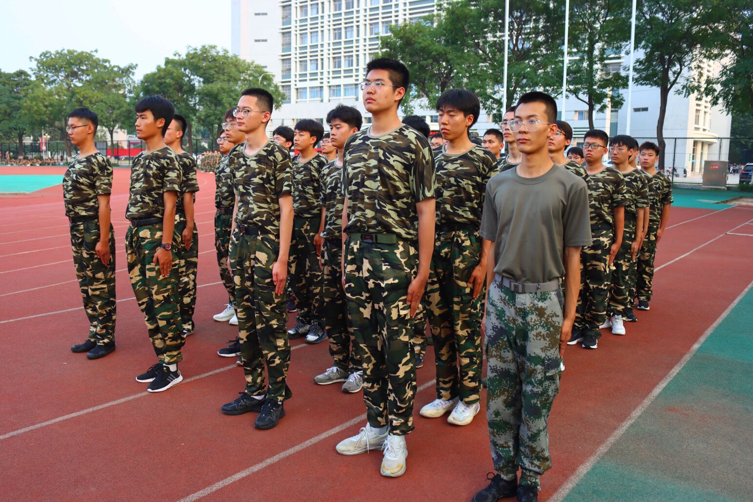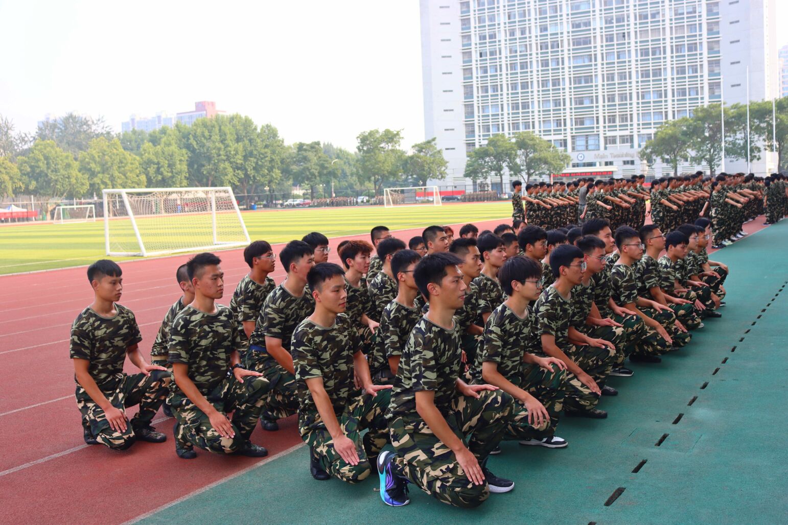 秋风吹动红旗,迎着旭日的阳光,田径场上的斑斑迷彩也镀上一层金光。随集结口号响起新一天的军训生活正式开始。