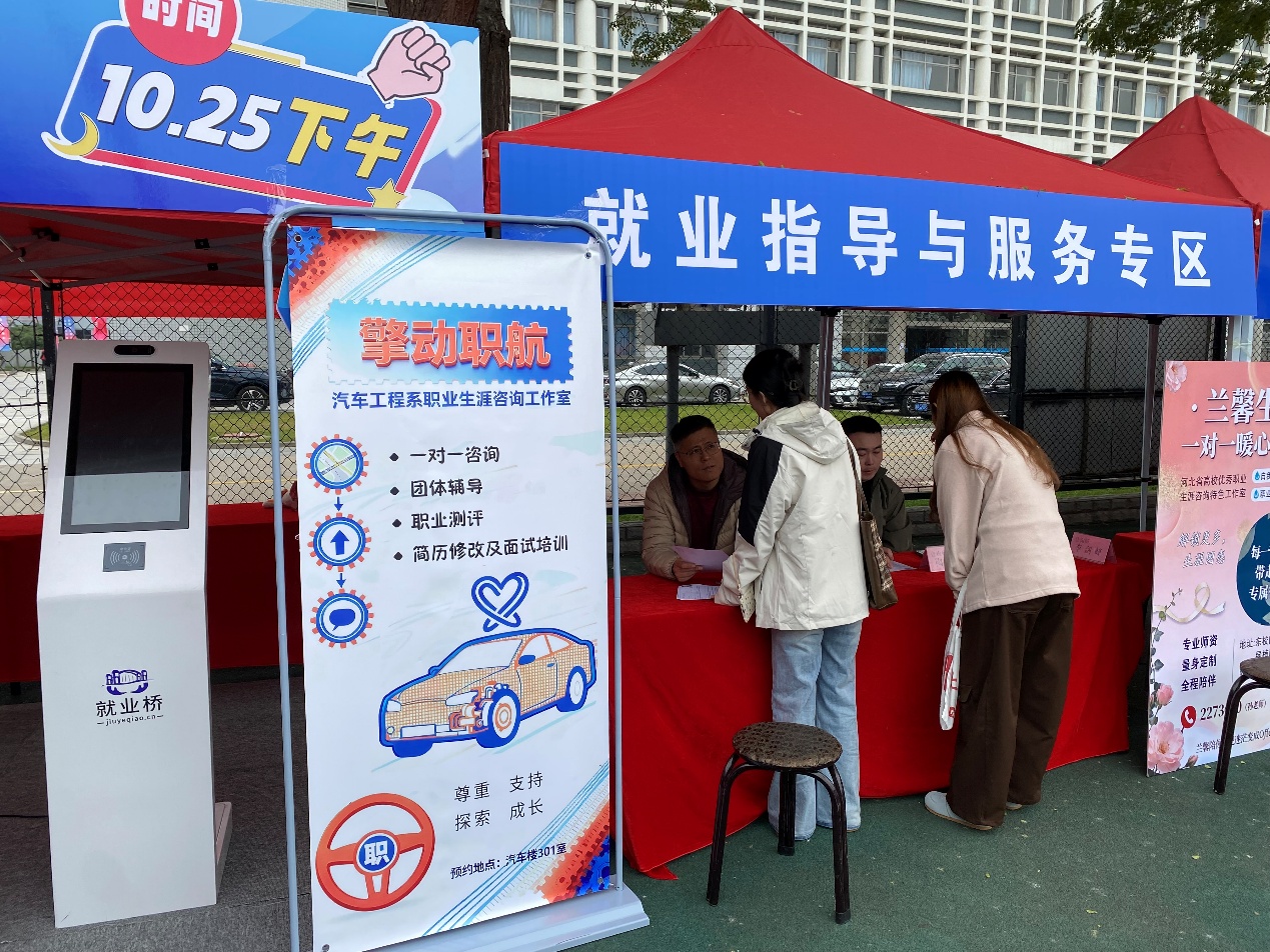 与此同时,汽车系积极动员2026届毕业生参与学校秋季大型双选会,进一步拓展就业渠道与资源覆盖面,邀请中华财险、平安保险、凌云股份、北京翔龙博瑞、远大阀门等50余家企业参会,提供涵盖汽车零部件研发、生产制造、售后服务、技术支持等多个领域的就业岗位。为帮助毕业生从容应对双选,院系提前开展多轮就业指导培训,针对简历优化、面试技巧、职业规划等内容进行专项辅导。双选会当天,汽车系“擎动职航”职业生涯咨询工作室在现场开设简历门诊,为学生们提供简历诊改及面试指导。