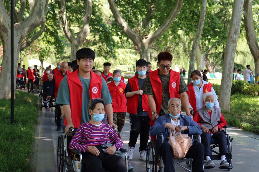 活动开始,各志愿者照例进行自检,确保自身健康。在养老院进行了短暂的慰问后,志愿者们有序选择需要陪同的老人,从养老院出发排队前往达活泉公园。途中我系志愿者与老人亲切交流,安抚老人情绪,细心的为老人遮阳、喂水。到达达活泉公园后,我系学生放慢脚步与老人享受公园环境,讨论美丽风景,或停留在喷泉或湖水周边,为老人们合影留念。临近中午时,我系志愿者陪同老人们有序离开公园返回养老院,陪伴时间虽短,却为长期在养老院生活的老人们传递了朝气与热情。