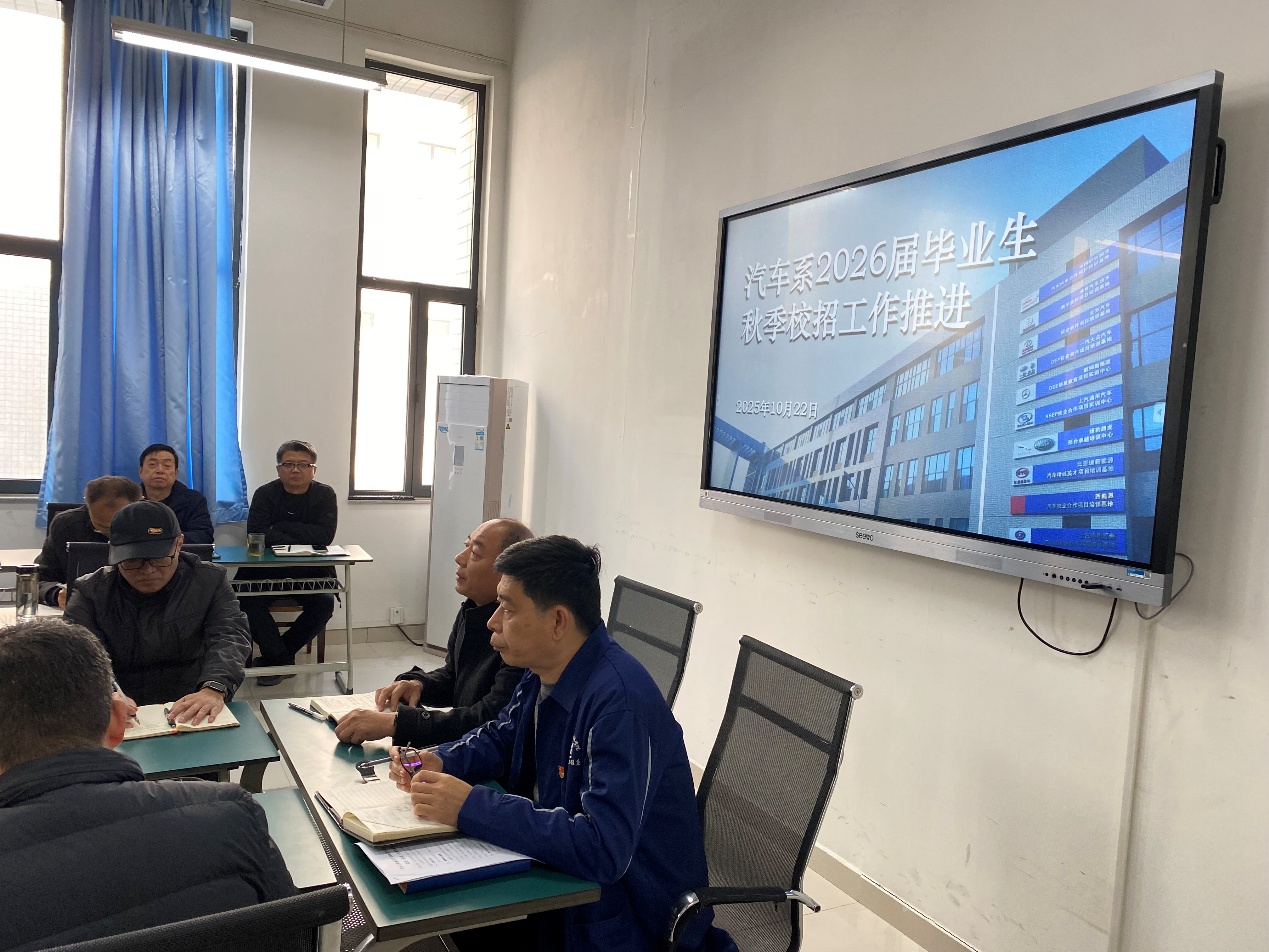 为抢抓秋招关键窗口期,精准对接汽车行业转型升级对人才的需求,迎接即将到来的秋季双选会,10月22日,汽车系在304会议室召开2026届毕业生秋季校招工作推进会。系领导班子和全体教师参加会议,会议由系党总支书记马金刚主持。