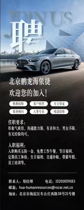 北京鹏龙海依捷招聘机修技师,服务顾问等