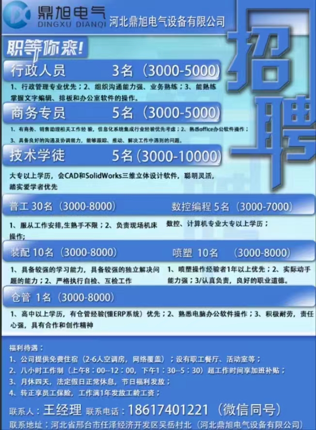河北鼎旭电气设备有限公司招聘中