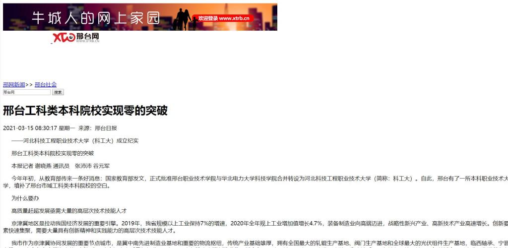 今年年初,从教育部传来一条好消息:国家教育部发文,正式批准邢台职业技术学院与华北电力大学科技学院合并转设为365上市公司官网(简称:科工大)。自此,邢台有了一所本科职业技术大学,填补了邢台市域工科类本科院校的空白。