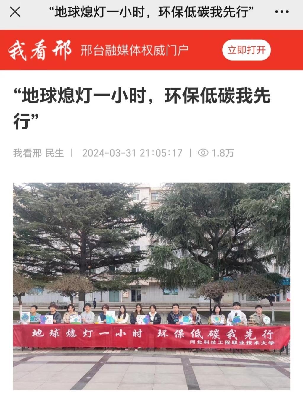 3月30日,河北科工大举办“地球熄灯一小时,环保低碳我先行”主题科普教育活动。大学生们在横幅上签名,还绘宣传画、制作环保手工。当晚,宿舍楼多数寝室熄灯一小时,留下部分寝室亮灯,组成“60”字样。通过此活动增强大学生们的节能环保意识,引导大学生们积极践行绿色低碳生活方式。