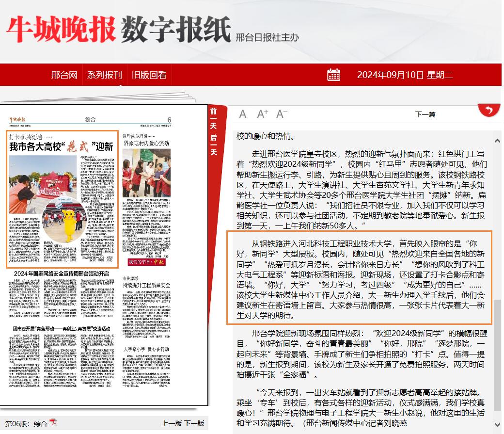 牛城晚报:我市各大高校“花式”迎新